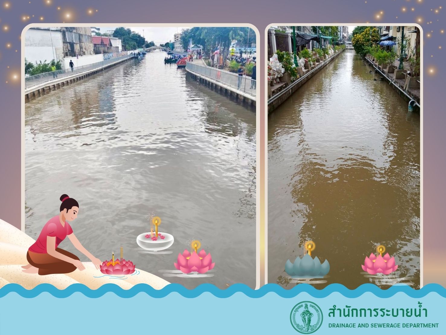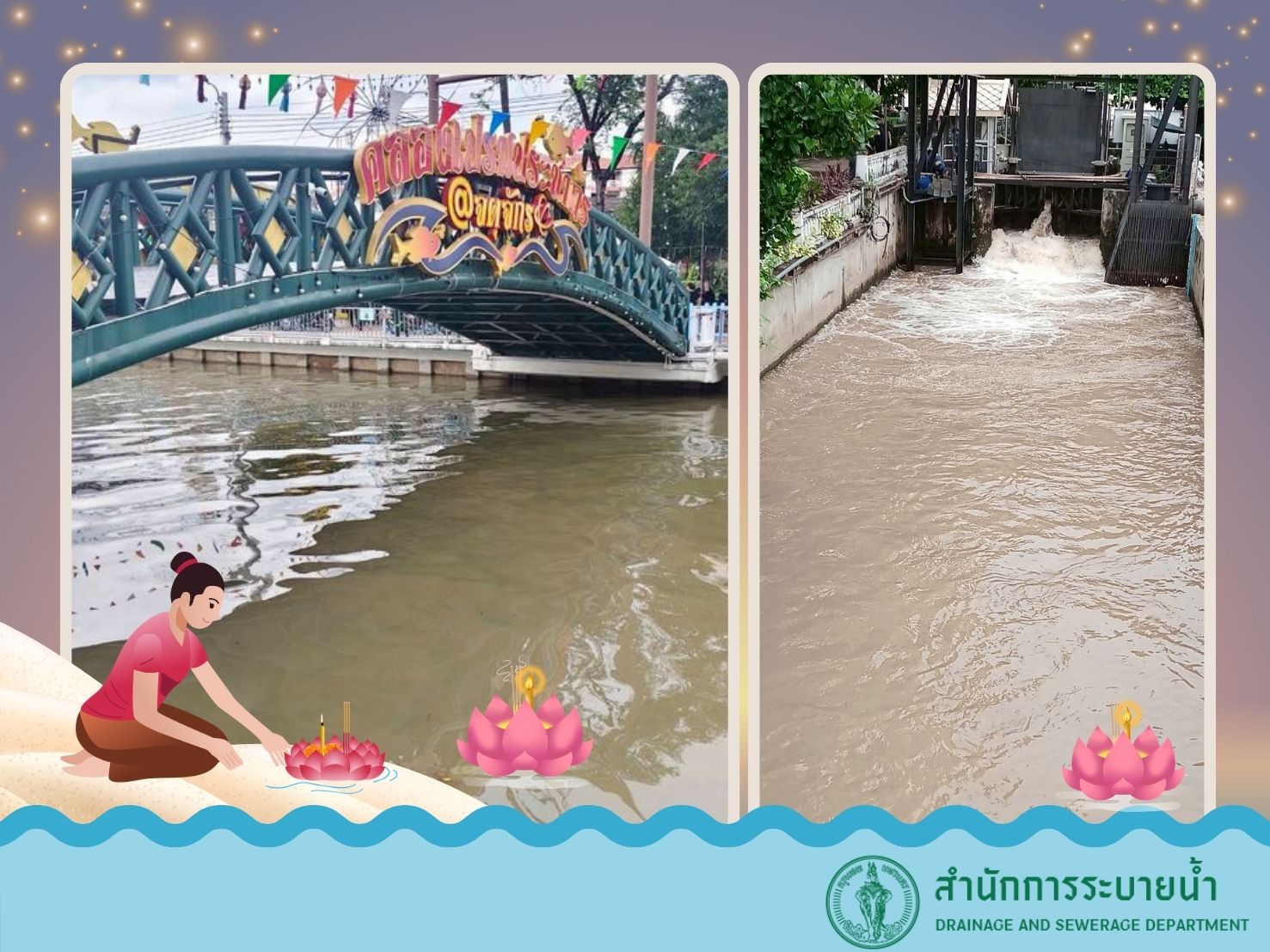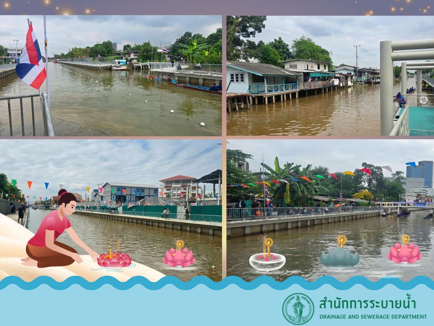 สำนักการระบายน้ำ โดยสำนักงานระบบควบคุมน้ำ ได้ดำเนินการถ่ายเทน้ำและหมุนเวียนน้ำในคลองสายต่าง ๆ ทั่วกรุงเทพมหานคร เพื่อเตรียมความพร้อมในเทศกาลลอยกระทง ซึ่งเป็นประเพณีสำคัญทางวัฒนธรรมของไทยที่สืบทอดมาอย่างยาวนาน