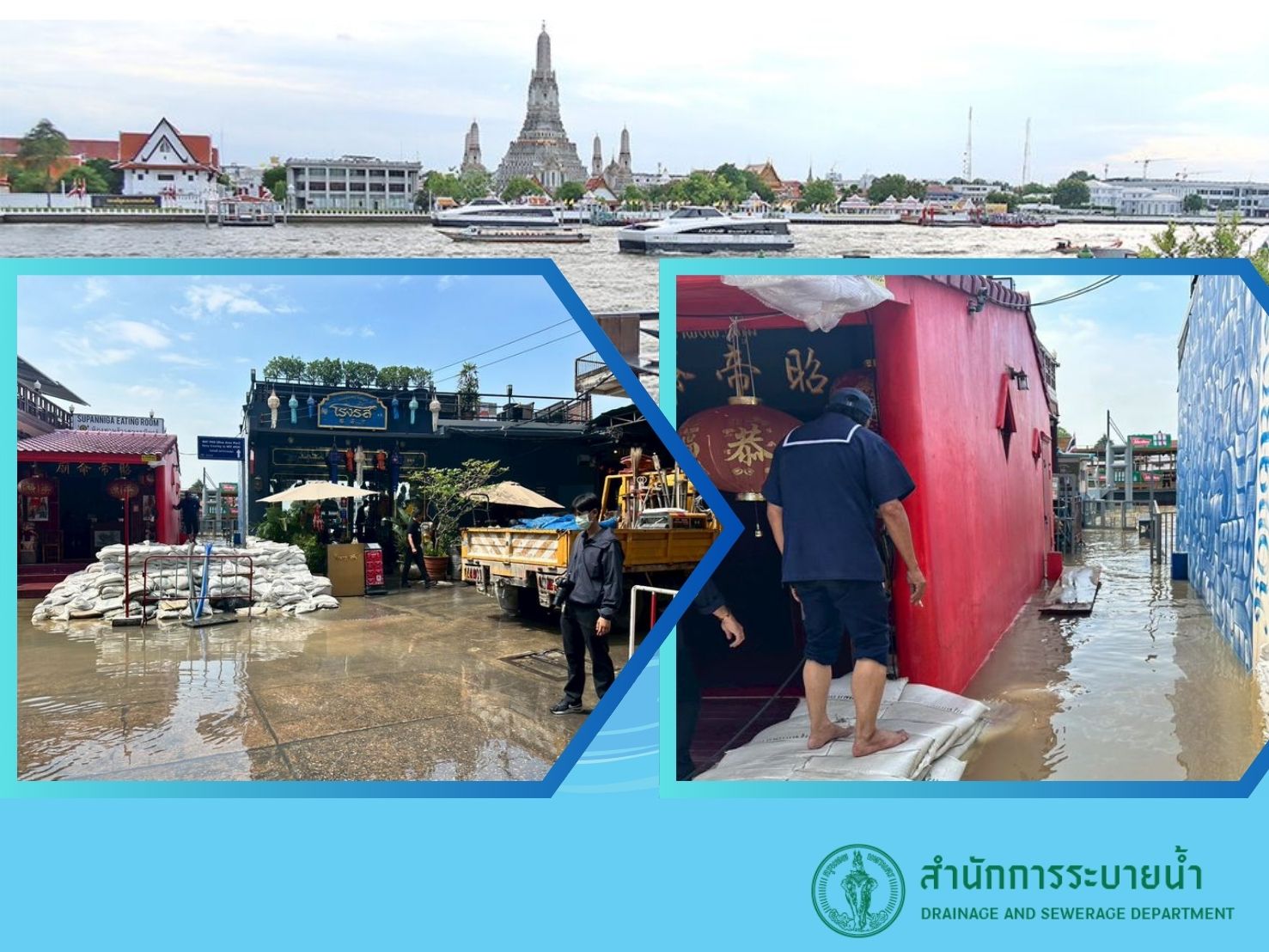 จากการตรวจสอบพบว่าแนวป้องกันน้ำในหลายจุดยังอยู่ในสภาพมั่นคงดี อย่างไรก็ตาม ผว.กทม. ได้มอบหมายให้สำนักการระบายน้ำเร่งดำเนินการ เสริมแนวกระสอบทรายเพิ่มเติมบริเวณรอบร้านอาหารโรงรส เพื่อป้องกันความเสียหายที่อาจเกิดขึ้นจากการทรุดตัวของผนังอาคาร และลดความเสี่ยงที่น้ำจะไหลบ่าเข้าพื้นที่สำคัญโดยรอบ