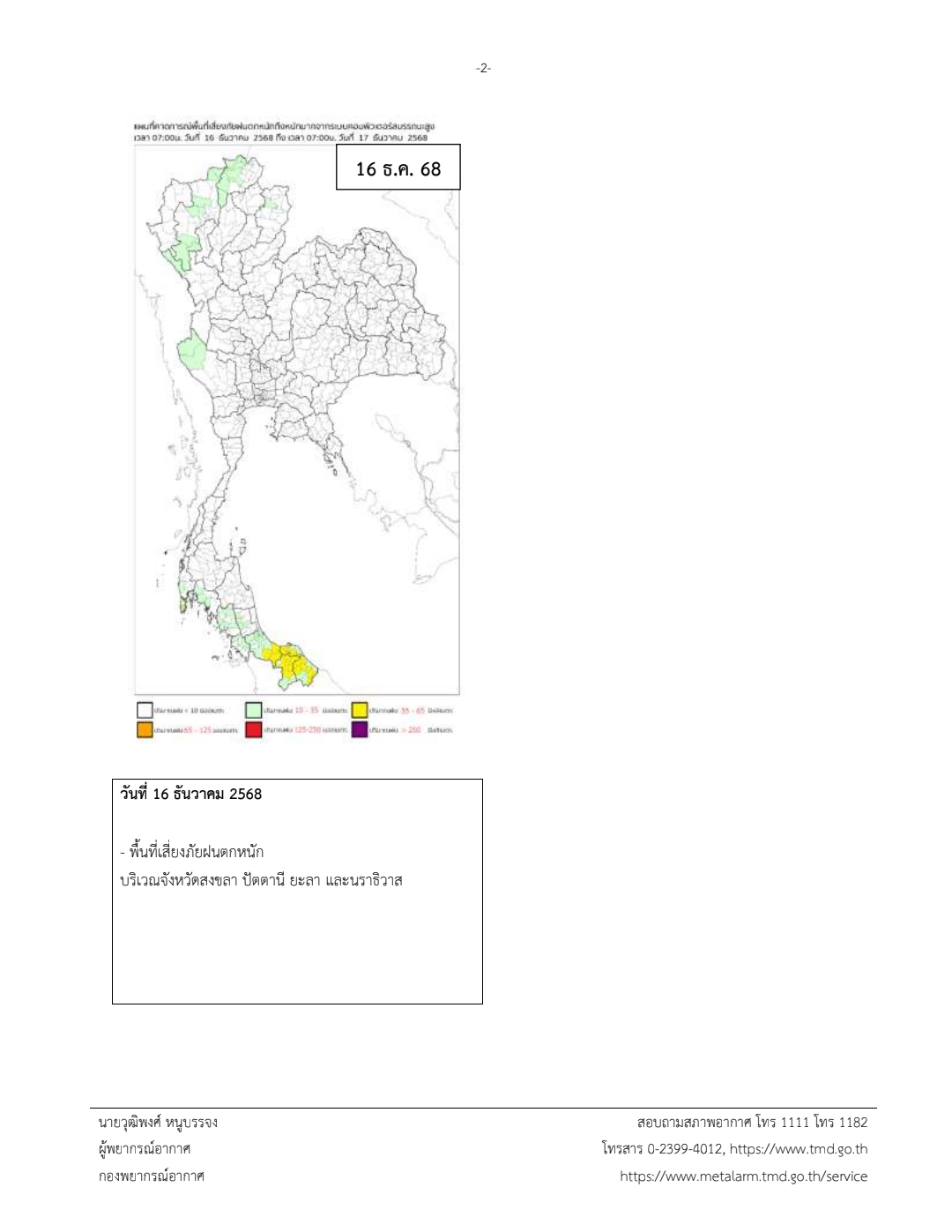 ประกาศกรมอุตุนิยมวิทยา เรื่อง ฝนตกหนักถึงหนักมากบริเวณภาคใต้ และคลื่นลมแรงบริเวณอ่าวไทย (มีผลกระทบจนถึงวันที่ 16 ธันวาคม 2568) ฉบับที่ 31