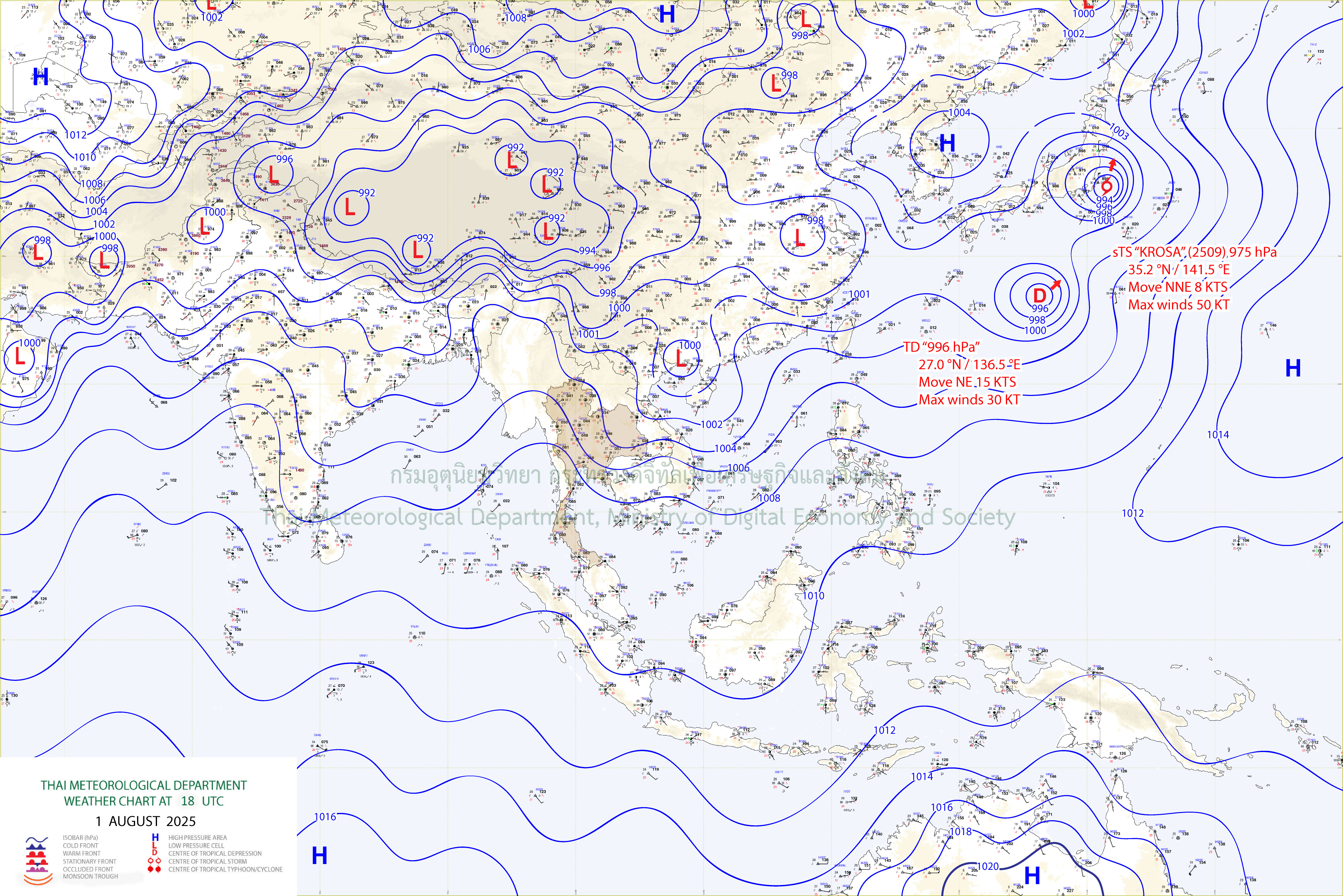 ลักษณะอากาศทั่วไป : พยากรณ์อากาศ 24 ชั่วโมงข้างหน้า ประเทศไทยตอนบนยังคงมีฝนน้อยเนื่องจากมรสุมตะวันตกเฉียงใต้กำลังอ่อนพัดปกคลุมทะเลอันดามัน ประเทศไทย และอ่าวไทย ในขณะที่มีหย่อมความกดอากาศต่ำปกคลุมบริเวณประเทศเวียดนามตอนบนและอ่าวตังเกี๋ย สำหรับคลื่นลมบริเวณทะเลอันดามันและอ่าวไทยมีกำลังอ่อน โดยบริเวณทะเลอันดามันตอนบนมีคลื่นสูง 1-2 เมตร บริเวณที่มีฝนฟ้าคะนองคลื่นสูงมากกว่า 2 เมตร ขอให้ชาวเรือบริเวณทะเลอันดามันและอ่าวไทยเดินเรือด้วยความระมัดระวังและหลีกเลี่ยงการเดินเรือในบริเวณที่มีฝนฟ้าคะนอง
