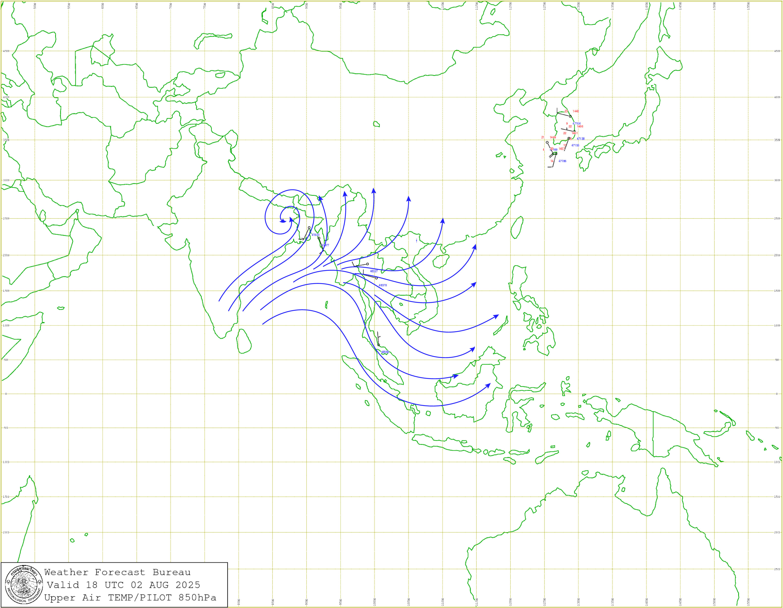 ลักษณะอากาศทั่วไป : พยากรณ์อากาศ 24 ชั่วโมงข้างหน้า ประเทศไทยตอนบนมีฝนน้อยเนื่องจากมรสุมตะวันตกเฉียงใต้กำลังอ่อนพัดปกคลุมทะเลอันดามัน ประเทศไทย และอ่าวไทย ในขณะที่มีหย่อมความกดอากาศต่ำปกคลุมบริเวณประเทศเวียดนามตอนบนและอ่าวตังเกี๋ย