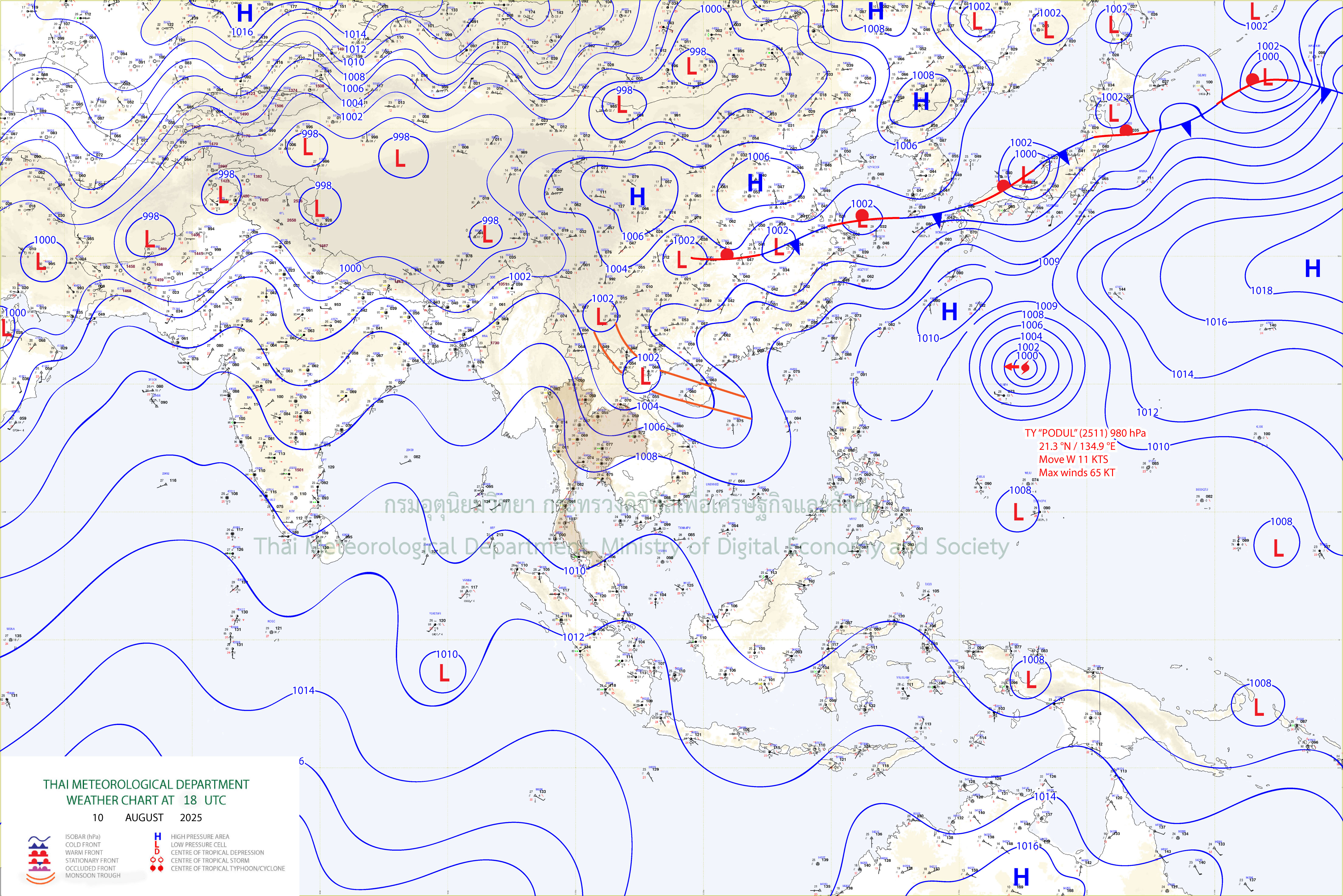 อนึ่ง พายุไต้ฝุ่น “โพดุล” (PODUL) บริเวณมหาสมุทรแปซิฟิก คาดว่าจะเคลื่อนผ่านเกาะไต้หวัน และเคลื่อนขึ้นฝั่งบริเวณด้านตะวันออกของประเทศจีนในช่วงวันที่ 13 – 14 ส.ค. โดยพายุนี้ไม่เคลื่อนเข้าสู่ประเทศไทย