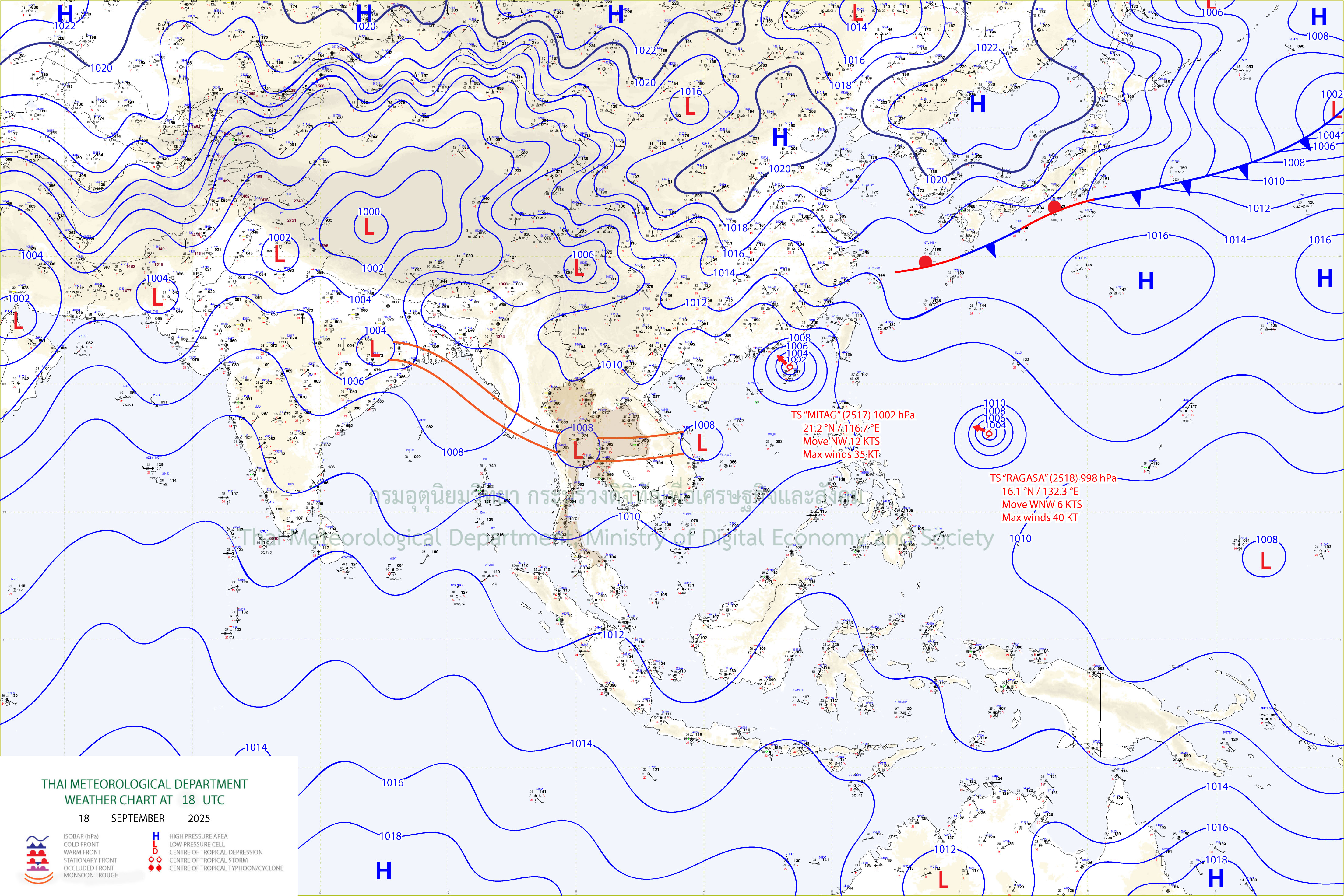 อนึ่ง พายุโซนร้อน “มิแทก” บริเวณทะเลจีนใต้ตอนบน มีแนวโน้มจะเคลื่อนขึ้นฝั่ง ในช่วงวันที่ 19 กันยายน 2568 โดยพายุนี้ไม่เคลื่อนเข้าประเทศไทย ขอให้ผู้ที่จะเดินทางไปบริเวณดังกล่าวตรวจสอบสภาพอากาศก่อนออกเดินทางในช่วงวันดังกล่าวไว้ด้วย