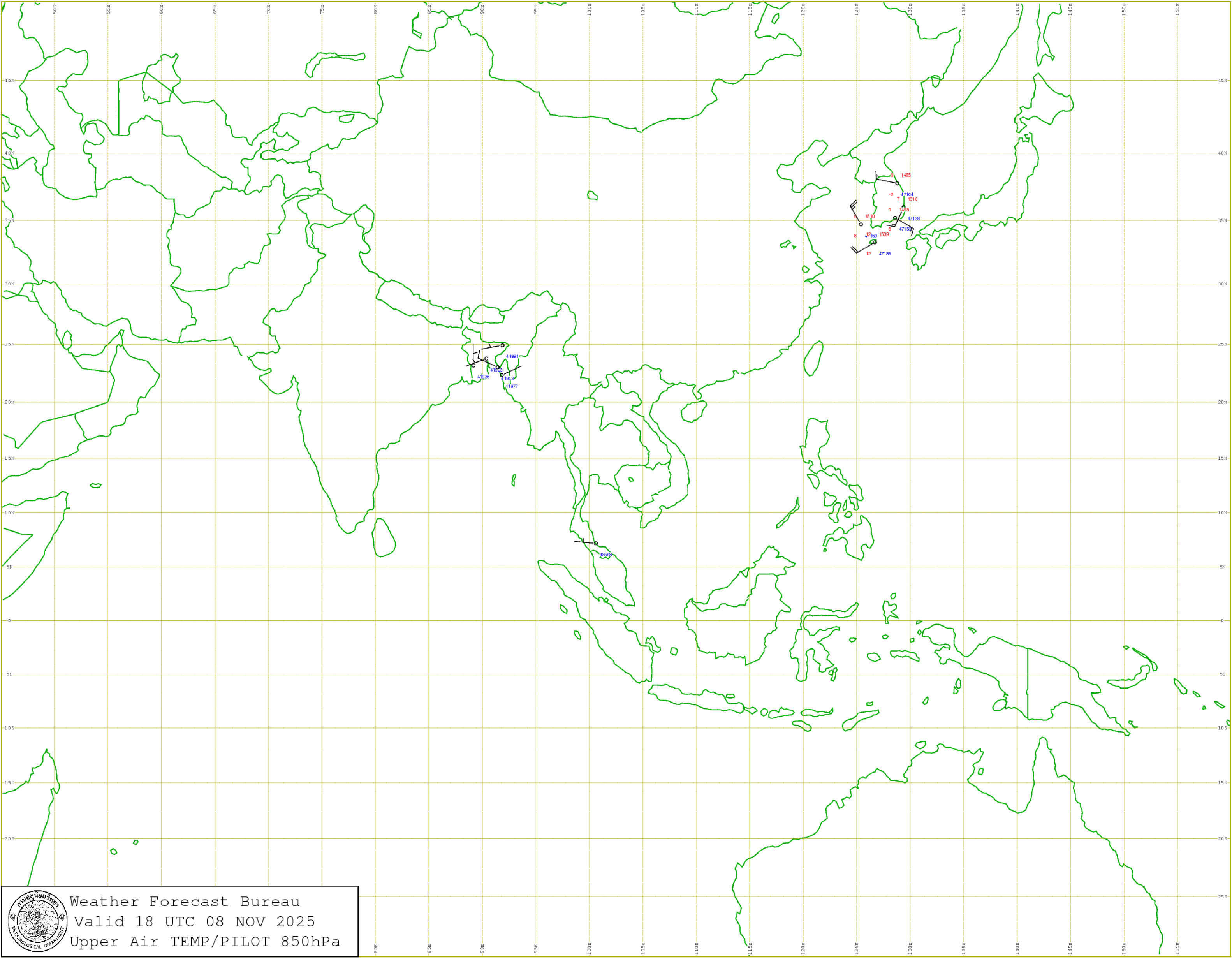 กรุงเทพมหานครและปริมณฑล : มีฝนฟ้าคะนอง ร้อยละ 40 ของพื้นที่ อุณหภูมิต่ำสุด 24-25 องศาเซลเซียส อุณหภูมิสูงสุด 31-33 องศาเซลเซียส ลมใต้ ความเร็ว 10-20 กม./ชม.