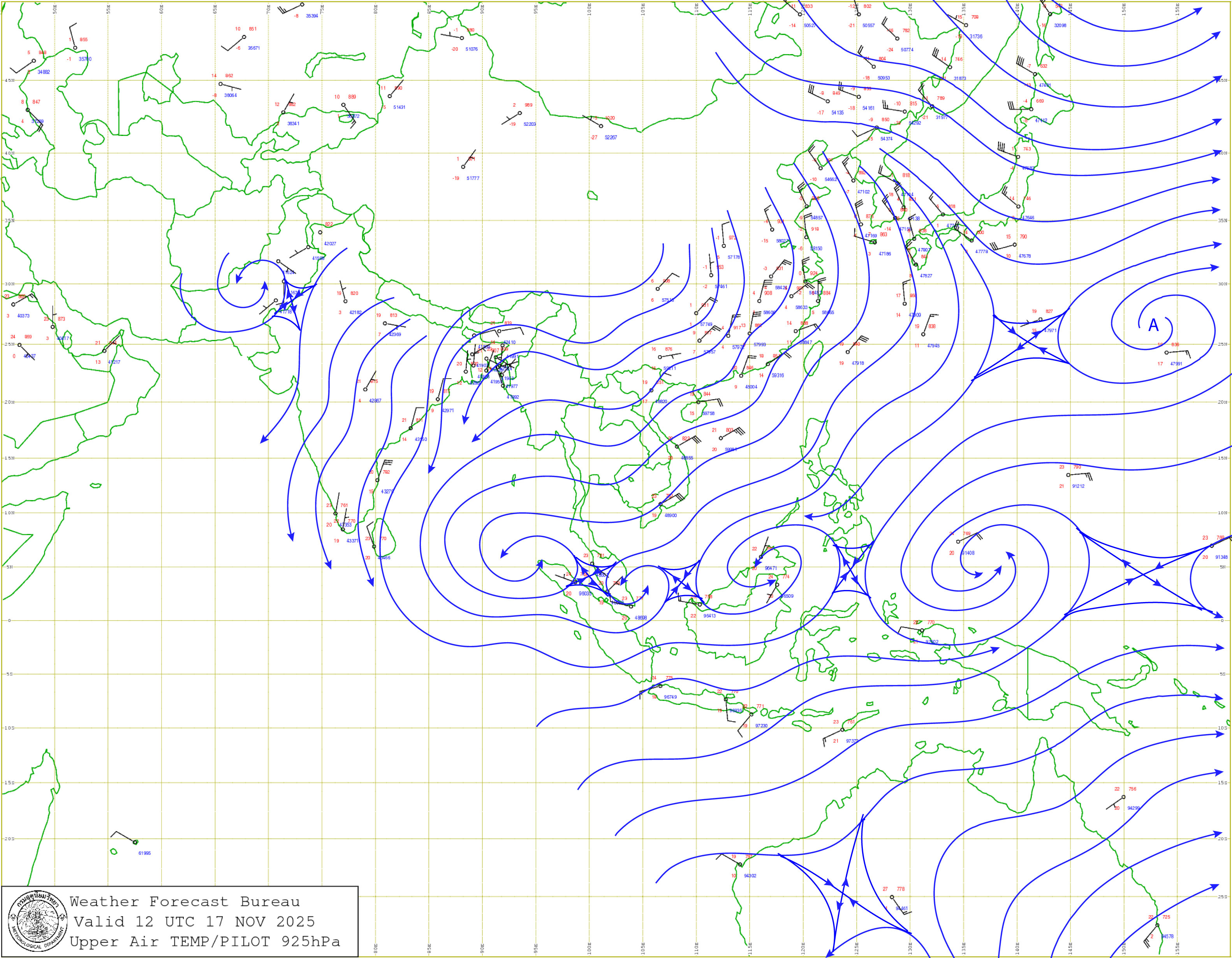 กรุงเทพมหานครและปริมณฑล : อากาศเย็น และอุณหภูมิจะลดลง 1-3 องศาเซลเซียส กับมีลมแรง โดยมีฝน ร้อยละ 40 ของพื้นที่ อุณหภูมิต่ำสุด 20-22 องศาเซลเซียส อุณหภูมิสูงสุด 28-30 องศาเซลเซียส