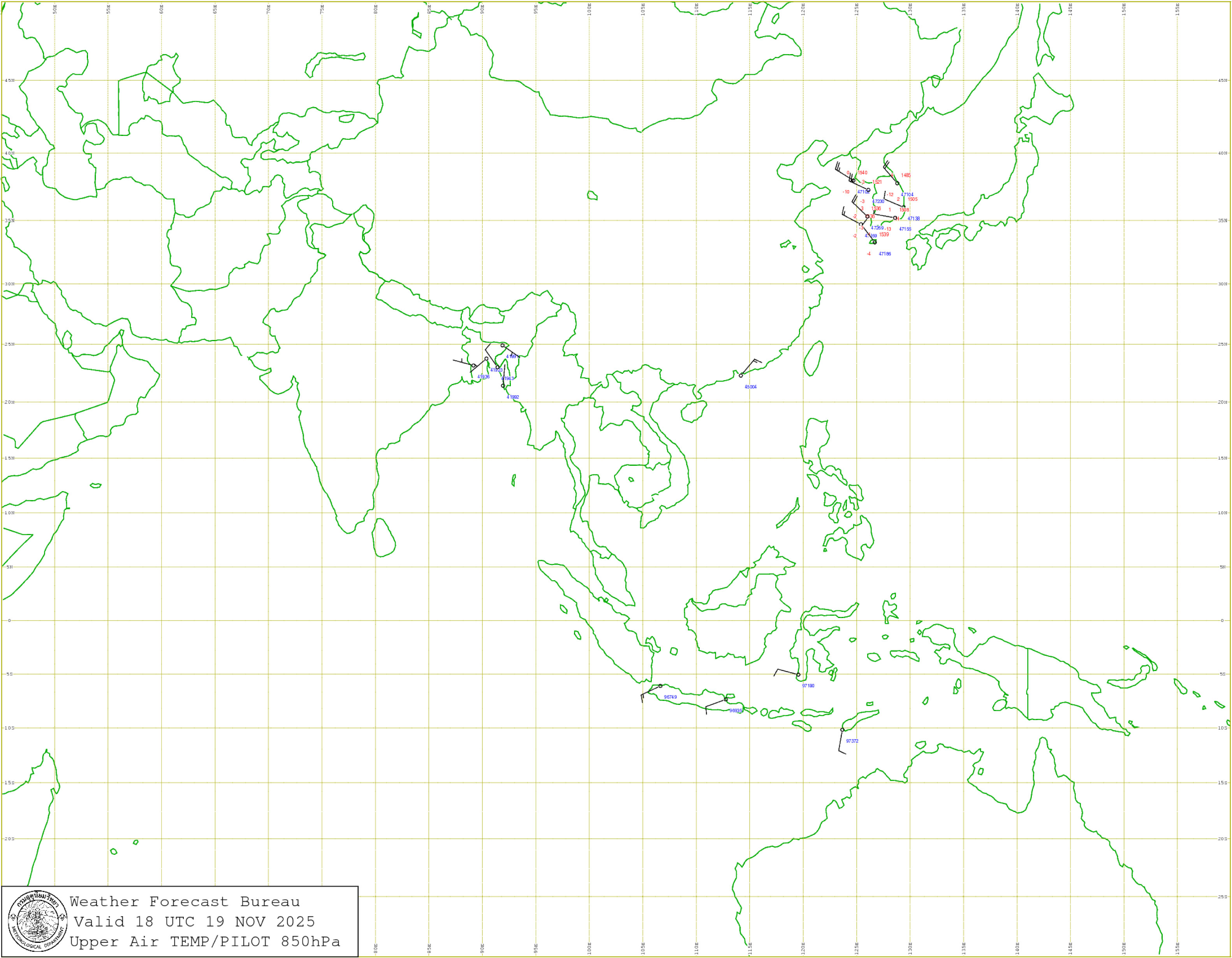 กรุงเทพมหานครและปริมณฑล : อากาศเย็นในตอนเช้ากับมีลมแรง อุณหภูมิต่ำสุด 20-22 องศาเซลเซียส อุณหภูมิสูงสุด 29-31 องศาเซลเซียส ลมตะวันออกเฉียงเหนือ ความเร็ว 10-30 กม./ชม.