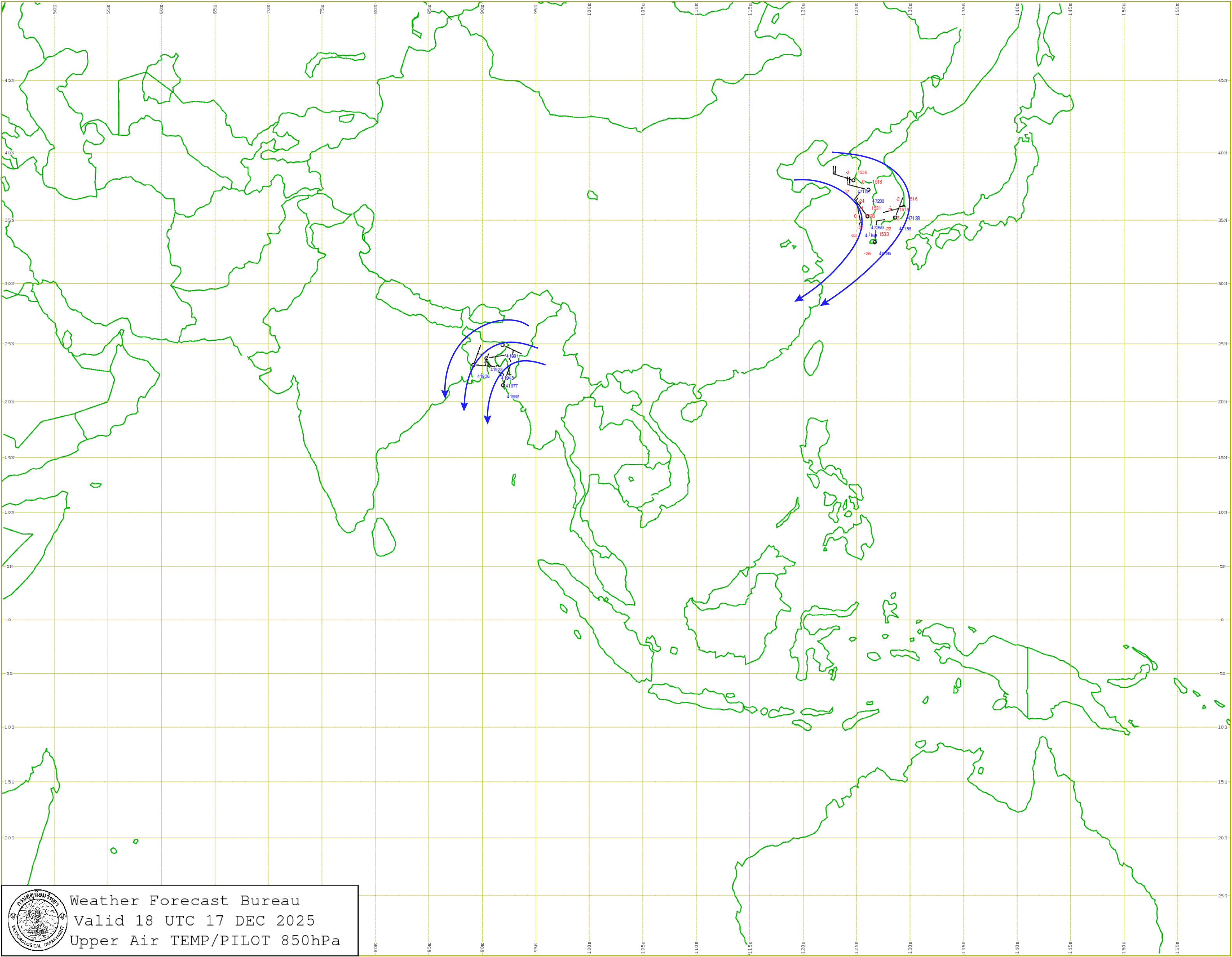 กรุงเทพมหานครและปริมณฑล : อากาศเย็นในตอนเช้า และอุณหภูมิจะลดลงเล็กน้อย อุณหภูมิต่ำสุด 22-24 องศาเซลเซียส อุณหภูมิสูงสุด 31-33 องศาเซลเซียส ลมตะวันออกเฉียงเหนือ ความเร็ว 10-20 กม./ชม.
