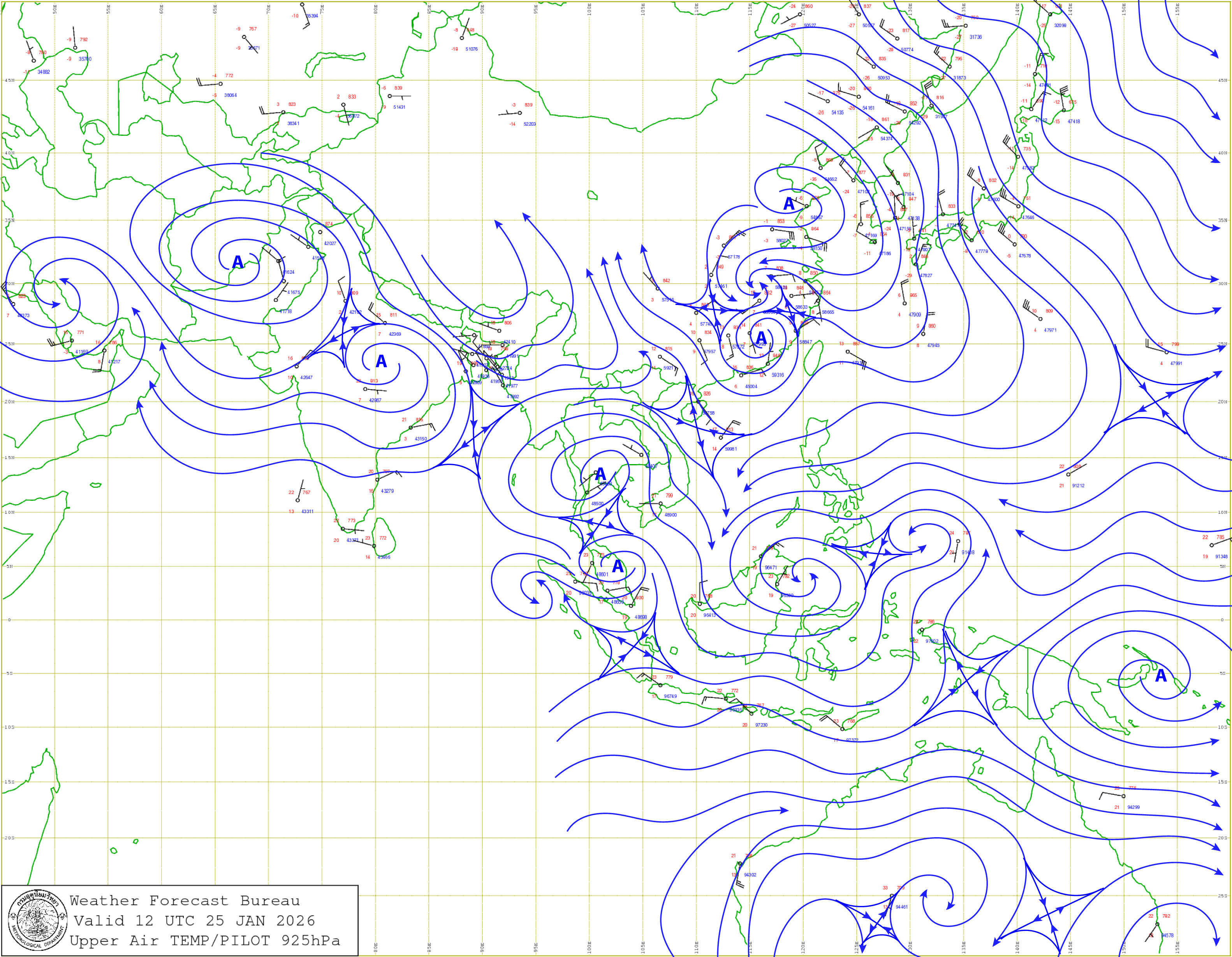 กรุงเทพมหานครและปริมณฑล : อากาศเย็นกับมีหมอกบางในตอนเช้า และอุณหภูมิจะสูงขึ้น 1-2 องศาเซลเซียส อุณหภูมิต่ำสุด 21-23 องศาเซลเซียส อุณหภูมิสูงสุด 32-35 องศาเซลเซียส ลมตะวันออก ความเร็ว 10-15 กม./ชม.