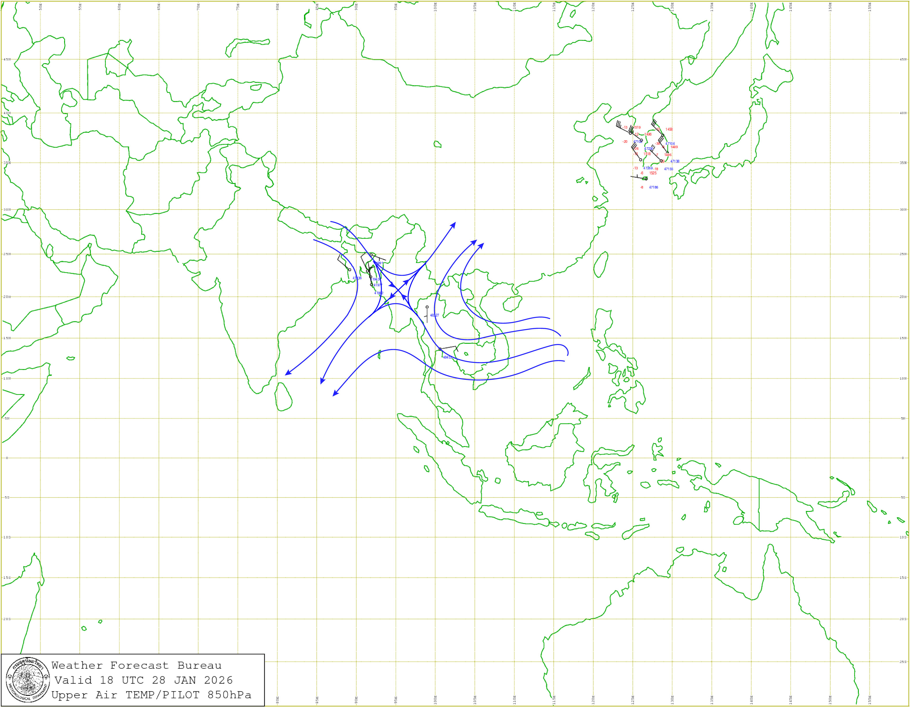 กรุงเทพมหานครและปริมณฑล : อากาศเย็นกับมีหมอกบางในตอนเช้า อุณหภูมิต่ำสุด 20-22 องศาเซลเซียส อุณหภูมิสูงสุด 33-34 องศาเซลเซียส ลมตะวันออก ความเร็ว 10-15 กม./ชม..