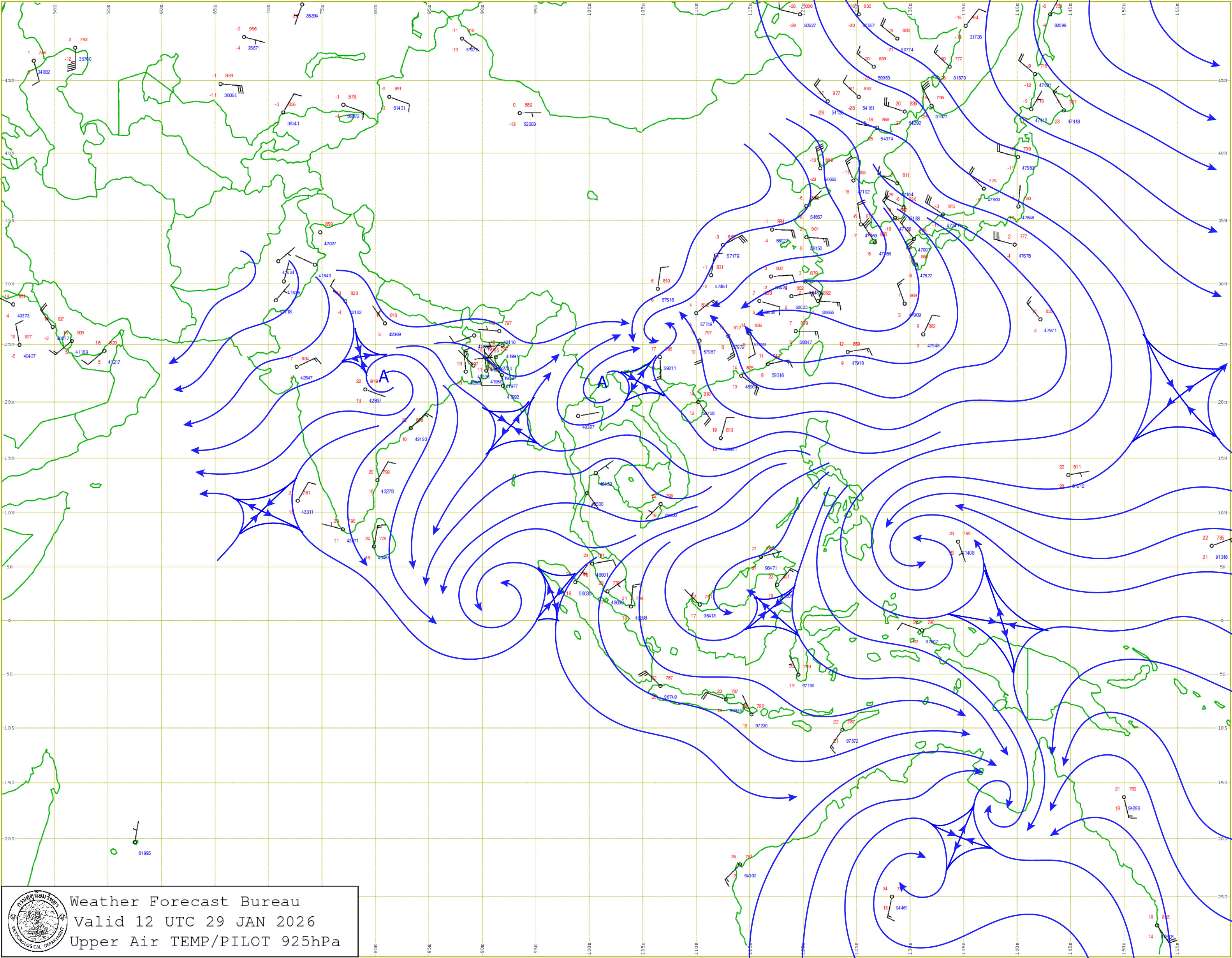 กรุงเทพมหานครและปริมณฑล : อากาศเย็นกับมีหมอกบางในตอนเช้า และอุณหภูมิจะสูงขึ้นอีกเล็กน้อย อุณหภูมิต่ำสุด 21-24 องศาเซลเซียส อุณหภูมิสูงสุด 33-35 องศาเซลเซียส ลมตะวันออก ความเร็ว 10-15 กม./ชม.