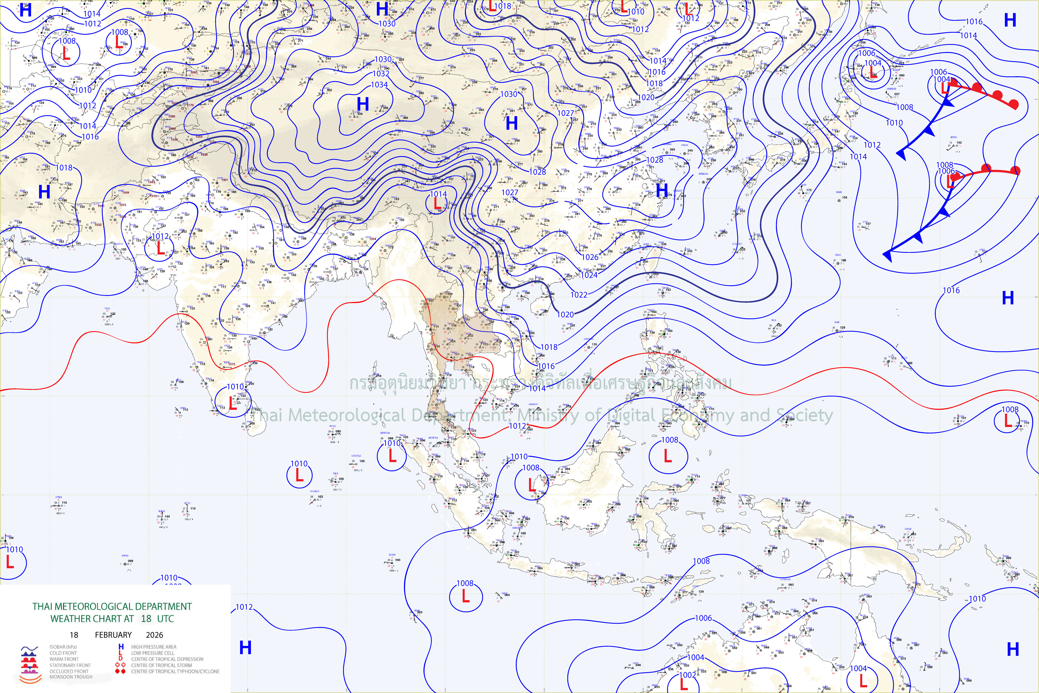 ลักษณะอากาศทั่วไป : พยากรณ์อากาศ 24 ชั่วโมงข้างหน้า ภาคเหนือมีฝนฟ้าคะนองบางแห่ง เนื่องจากมีแนวพัดสอบบริเวณของลมตะวันออกเฉียงใต้และลมตะวันตกเฉียงใต้ปกคลุมบริเวณภาคเหนือตอนบน ในขณะที่บริเวณความกดอากาศสูงหรือมวลอากาศเย็นกำลังปานกลางจากประเทศจีนปกคลุมภาคตะวันออกเฉียงเหนือ ทำให้บริเวณดังกล่าวมีอากาศเย็นในตอนเช้า ขอให้ประชาชนในบริเวณภาคเหนือระวังอันตรายจากฝนฟ้าคะนองที่จะเกิดขึ้นในระยะนี้ ส่วนประชาชนบริเวณประเทศไทยตอนบนดูแลรักษาสุขภาพเนื่องจากสภาพอากาศที่เปลี่ยนแปลง