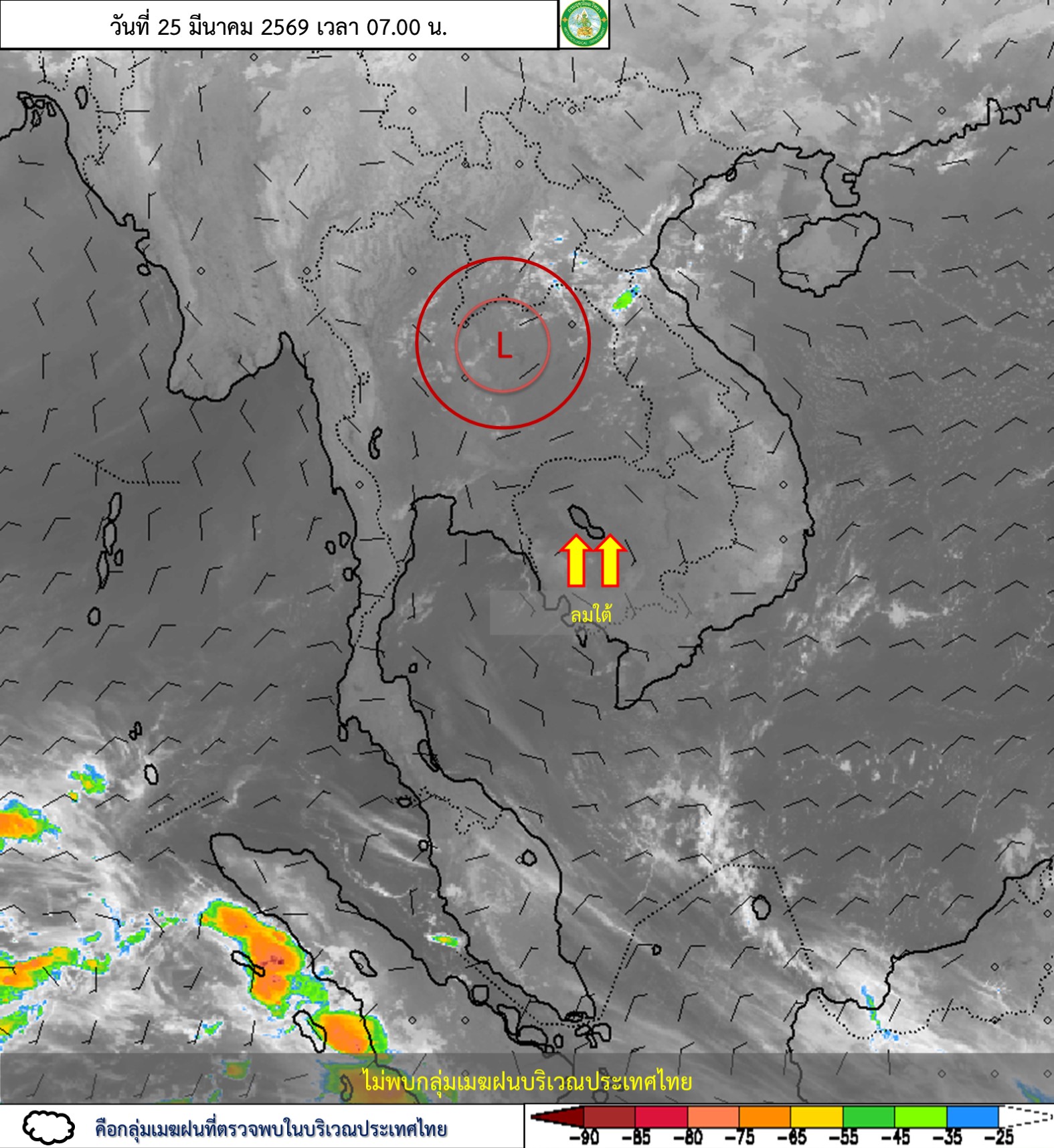 ในรอบ 24 ชั่วโมงที่ผ่านมา (07.00 น.) : ไม่มีฝนตกพื้นที่กรุงเทพมหานคร