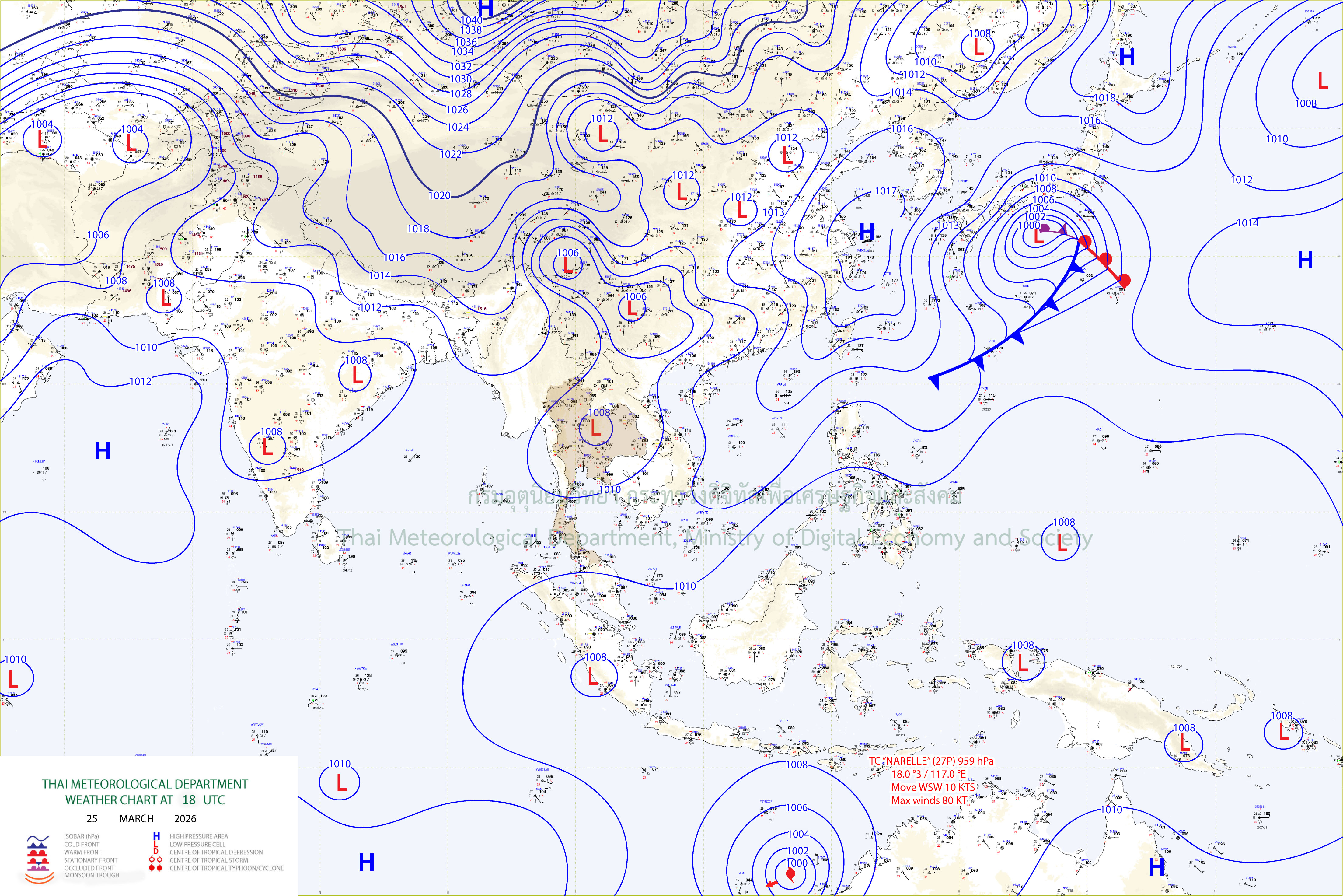 ลักษณะอากาศทั่วไป : พยากรณ์อากาศ 24 ชั่วโมงข้างหน้า ประเทศไทยมีอากาศร้อนโดยทั่วไป กับมีฟ้าหลัวในตอนกลางวัน และมีอากาศร้อนจัดบางพื้นที่ในภาคเหนือ ภาคตะวันออกเฉียงเหนือ และภาคกลาง โดยมีฝนฟ้าคะนอง กับมีลมกระโชกแรงบางแห่งลดลง เนื่องจากความกดอากาศต่ำเนื่องจากความร้อนปกคลุมประเทศไทยตอนบน ในขณะที่มีลมใต้และลมตะวันออกเฉียงใต้กำลังอ่อนพัดปกคลุมในบริเวณดังกล่าว ขอให้ประชาชนบริเวณประเทศไทยดูแลรักษาสุขภาพเนื่องจากสภาพอากาศที่ร้อนถึงร้อนจัด โดยหลีกเลี่ยงการทำงานหรือการประกอบกิจกรรมในที่โล่งแจ้งเป็นระยะเวลานาน รวมทั้งระวังอันตรายจากฝนฟ้าคะนองและลมกระโชกแรงที่อาจเกิดขึ้นในบางพื้นที่ไว้ด้วย
