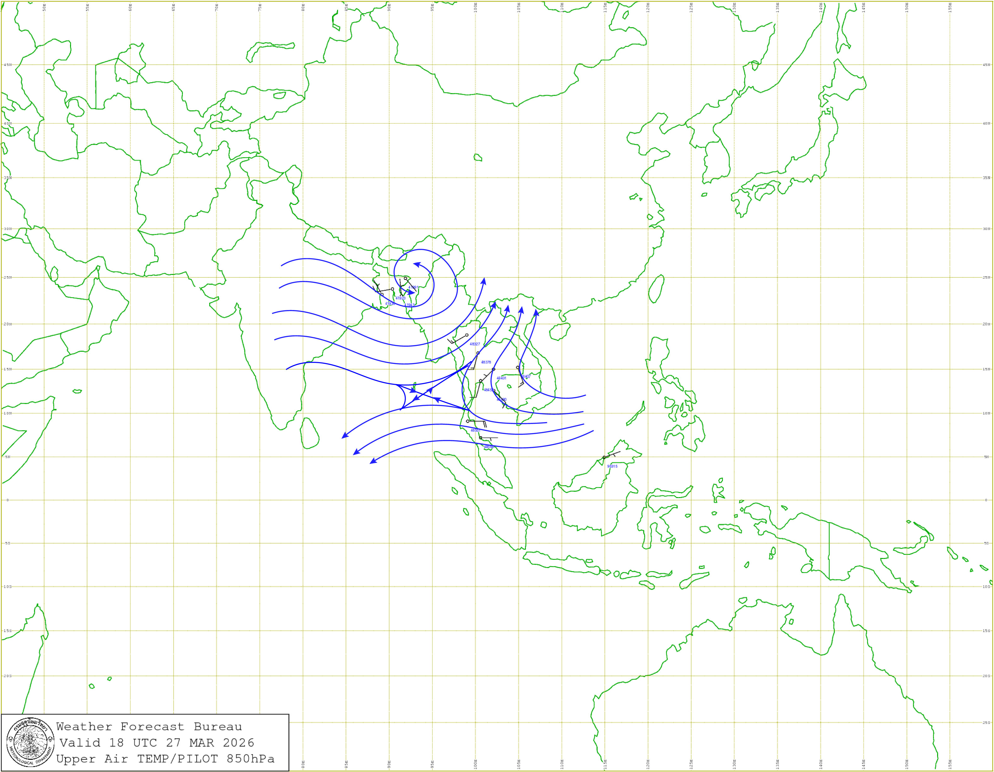 กรุงเทพมหานครและปริมณฑล : อากาศร้อนโดยทั่วไป กับมีฟ้าหลัวในตอนกลางวัน อุณหภูมิต่ำสุด 26-28 องศาเซลเซียส อุณหภูมิสูงสุด 36-39 องศาเซลเซียส ลมใต้ ความเร็ว 10-20 กม./ชม.