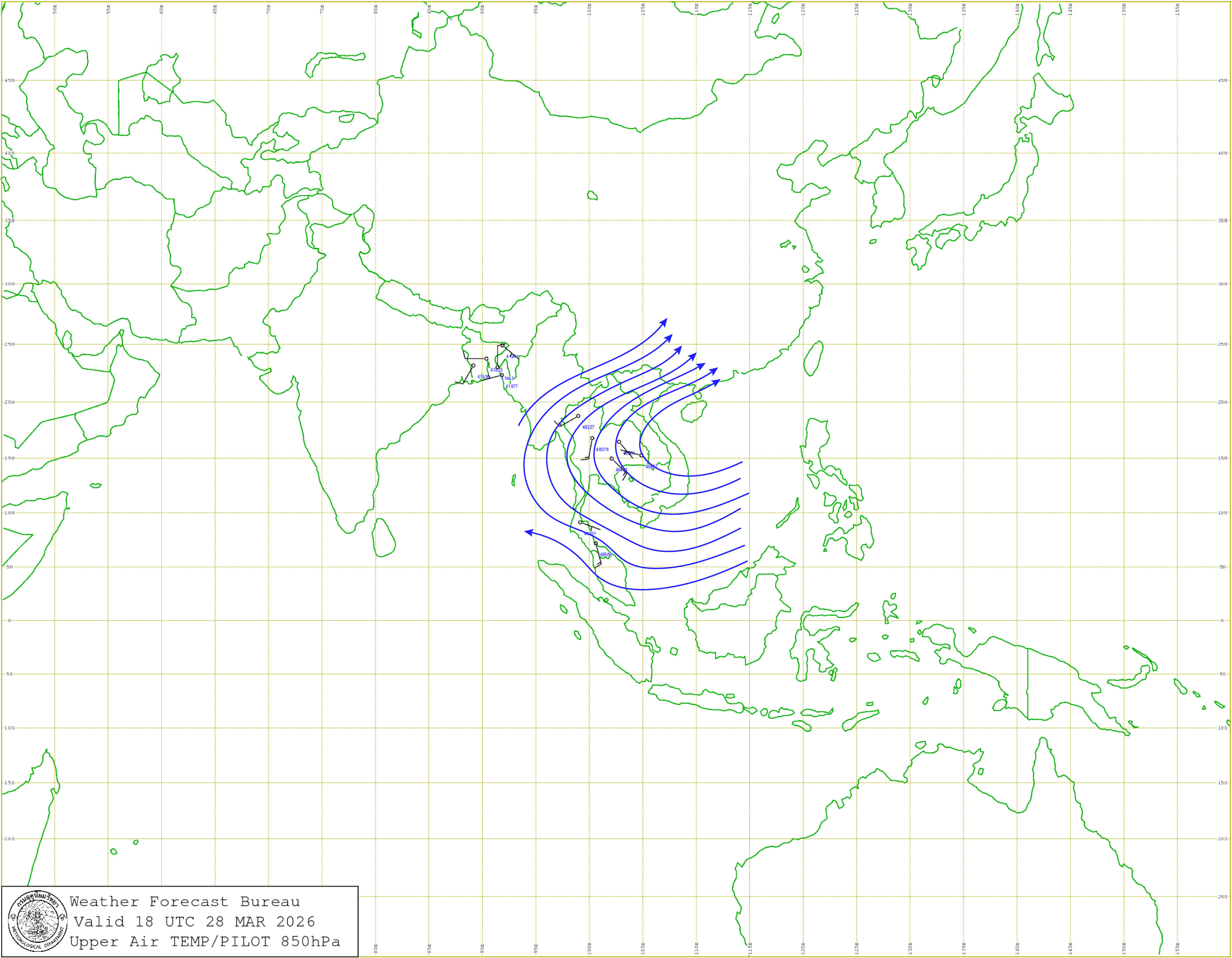 กรุงเทพมหานครและปริมณฑล : อากาศร้อนโดยทั่วไป กับมีฟ้าหลัวในตอนกลางวัน อุณหภูมิต่ำสุด 26-28 องศาเซลเซียส อุณหภูมิสูงสุด 36-38 องศาเซลเซียส ลมใต้ ความเร็ว 10-20 กม./ชม.